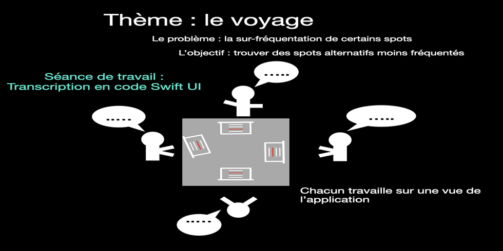 4 personnes - 4 semaines : pour identifier un problème sur un thème imposé, élaborer une solution, réaliser une maquette sur Figma, et coder l'application en Swift UI.